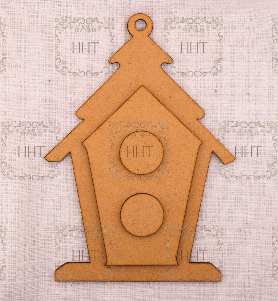 Dimensions: Handcrafted Holiday Traditions presents a Laser cut Christmas Birdhouse base blank with overlay and 2 center circles for decoupage and mixed media. Dimensions: 5.25” x 7.5”.