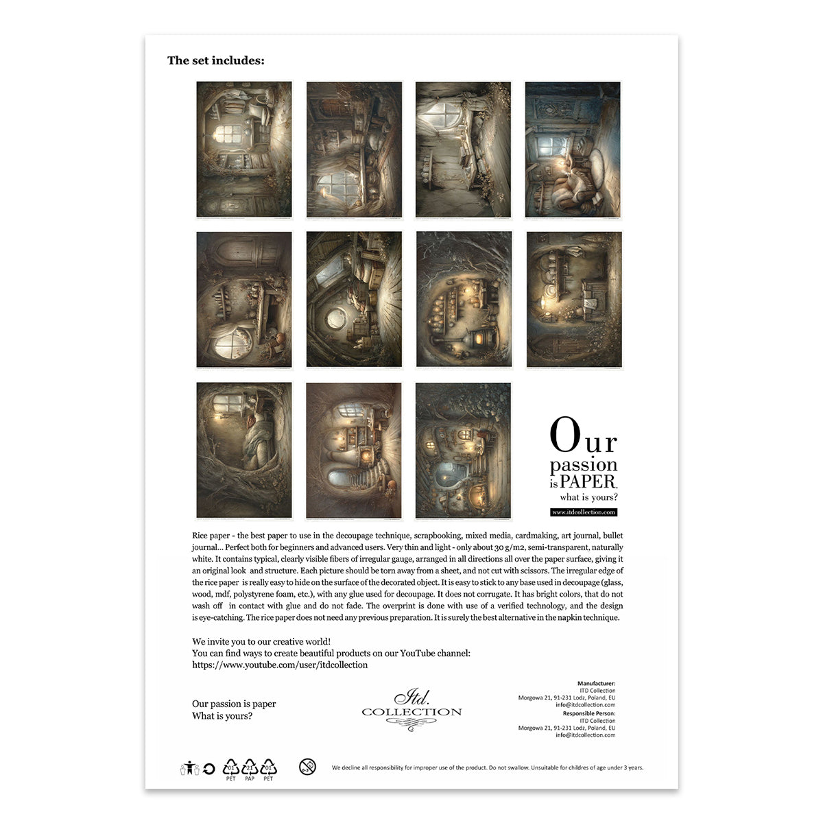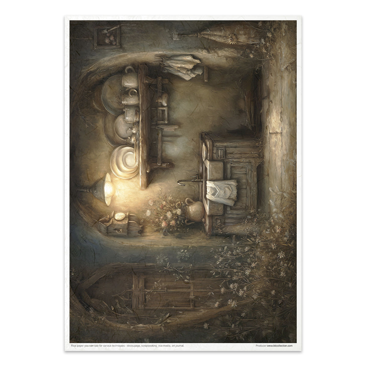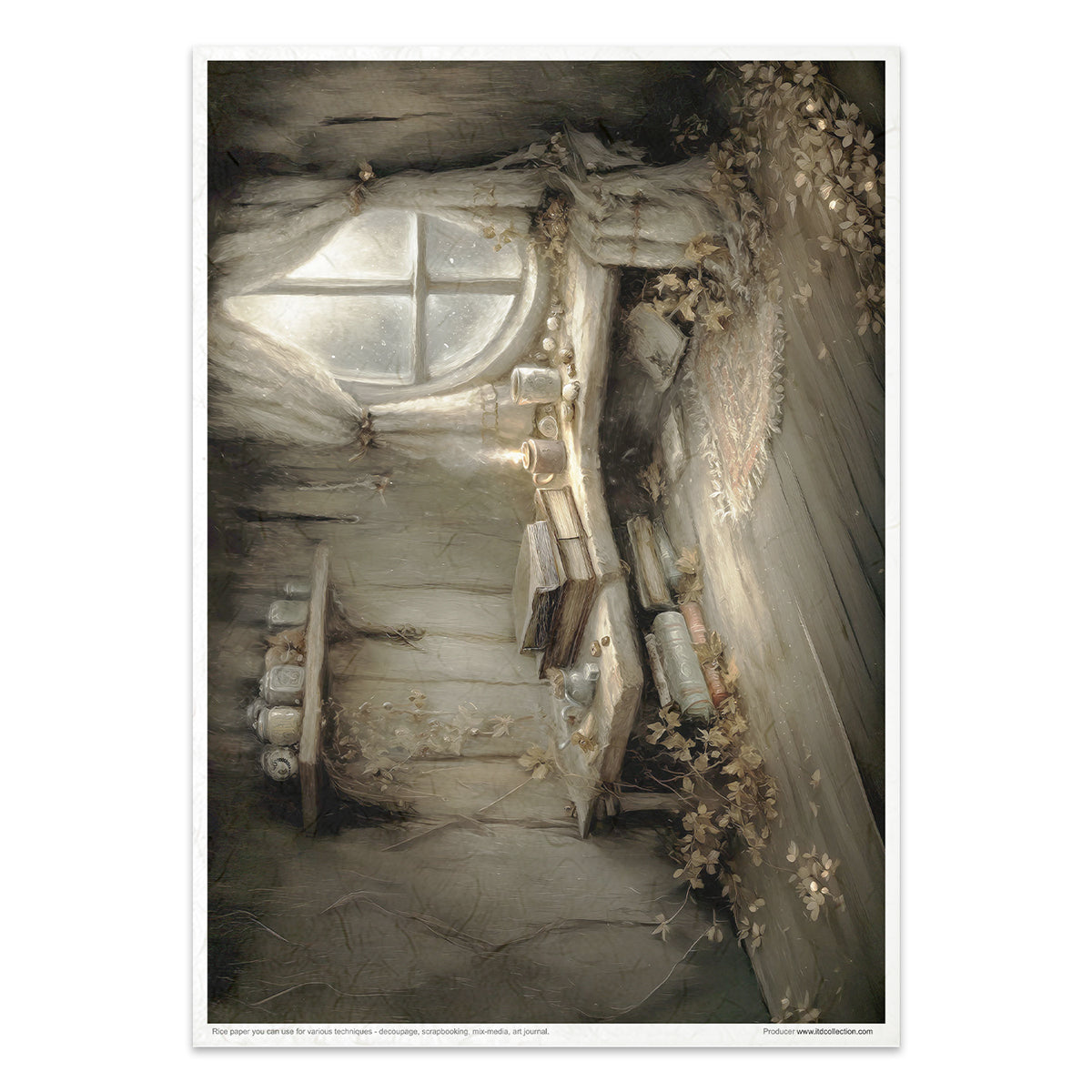ITD Collection is a Polish producer and publisher of rice paper and other specialty papers for decoupage. The rice paper has exceptional strength and is thin, yet durable. Vibrant colors, great patterns. It has clearly visible, large decorative fibers. When edges around images are "torn out" from it, the design blends in with the background of the decorated object. A special printing technique makes the colors of this paper resistant to water or glues and does not fade. Perfect for decoupage, scrapbooking, cardmaking, art journaling, mixed media and more.
