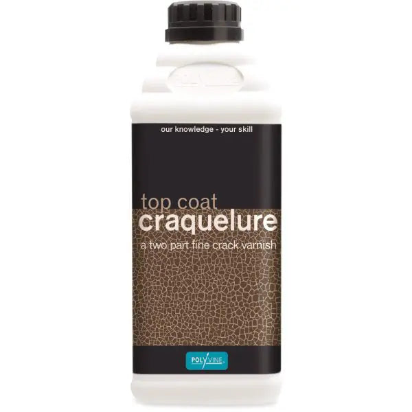 Polyvine Craquelure Base Coat is available in in both 500 ml and 1 Liter bottles. The Top Coat is available in 500 ml size. These large sizes are not kept in stock. For assistance, please use our store contact form. We are happy to arrange drop-ship orders directly from our Polyvine distributor.