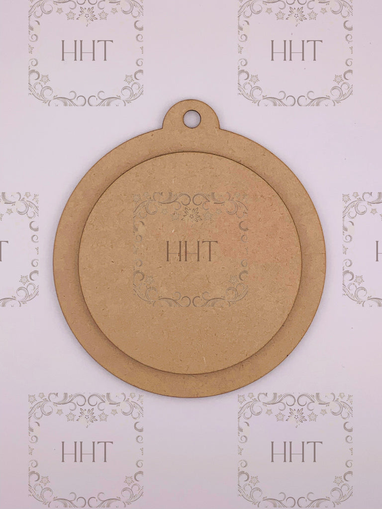 Handcrafted Holiday Traditions Ornament with Overlay Bow Frame MDF 2 piece brown wood shape.